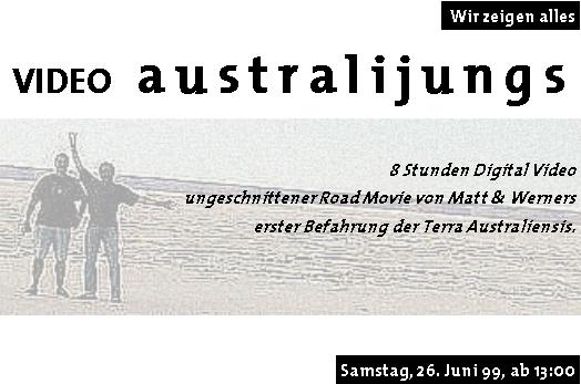 Wir laden Euch ein, am 26. Juni 99 zu unserer glamourösen Video Australijungs. |