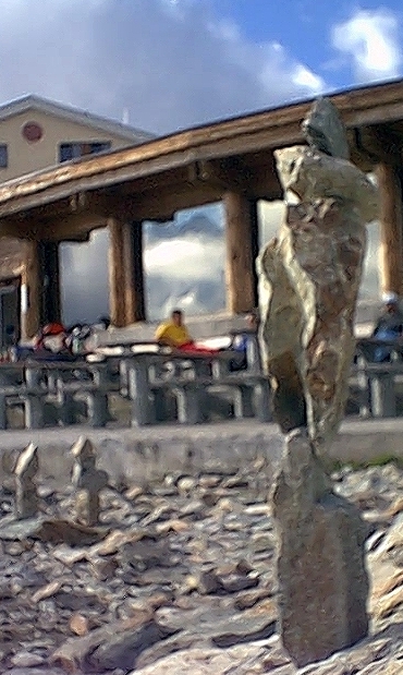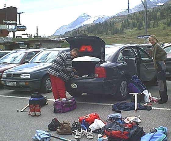 Donnerstagabend Fahrt nach Pontresina. Jede/r skizziert seine letzten 15 Jahre Lebens. Auf dem Julier: Erkunden eines Biwakraums. Nachtessen im Saratz, Übernachtung im Hotel Alvetern. Am Freitag mit der Bahn auf die Diavolezza. Zeitvertrieb mit Steigeisentests. Werner zentriert Steine beim Bauen von Frauen und Männern. Samstags 04:00: Aufstehen in einer Männergesellschaft. "Frauen würden das etwas komplizierter machen." (Sara). 04:30: Palü / Überqerung / Fortezza mit Bergführer Aschi Müller. Planänderung wegen ungünstiger Wetterentwicklung: Abstieg über die Fortezza anstatt Besteigung der Bernina via Marco e Rosa Hütte. Mario ist gut in Form und trägt das Seil übers Geröll hinauf zur Hütte. Nachmittags Heimfahrt wegen schlechten Wetterprognosen. Angeregtes Philosophieren unter Leitung von Sara. Die Bernina kann warten ...